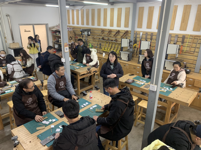 随后,专业木艺老师为大家讲解了木艺手作的基本知识和技巧,并示范了木梳的制作过程。大家兴致勃勃,纷纷拿起工具,在工作人员的指导下,精心设计、耐心打磨、细心雕琢,体验着木艺创作的乐趣。活动现场气氛热烈,大家互相交流制作心得,分享创作灵感,在亲手劳作中感受着木艺的魅力。经过两个多小时的精心制作,精美的木梳在大家的手中逐渐成型,每一件作品都凝聚着教职工们的匠心和巧思,也承载着大家对美好生活的热爱和追求。