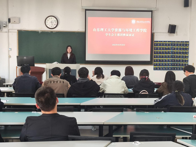 3月20日下午,资环学院2025年度学生会主席团候选人竞选面试在12号教学楼408教室举行。学院党委副书记秦伟伟、团委相关老师和本届学生会主席团成员、各部门部长担任评委。