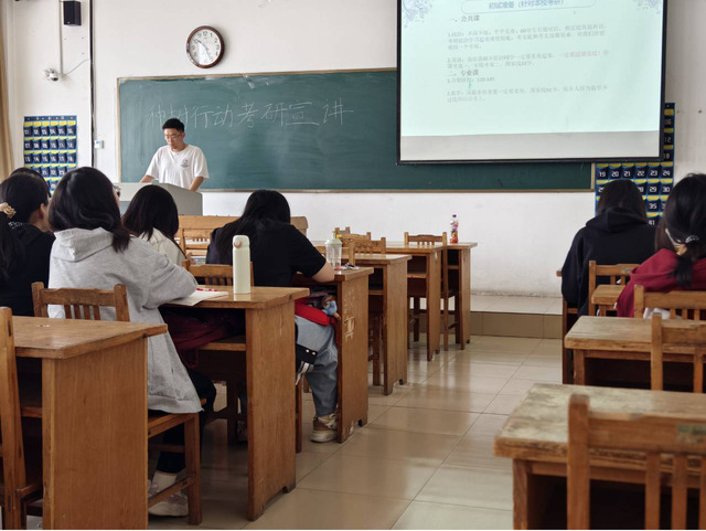 宣讲会上,“种树行动”宣讲团成员围绕考研备考整体过程展开交流,结合自身经历,详细讲解了院校选择策略、时间规划方法及复习资料筛选技巧等。他们建议低年级同学们根据专业实力、地域优势等因素理性择校,并将备考划分为基础、强化、冲刺阶段;同时强调“适合自己才是最好”,引导同学们避免盲目跟风购买复习资料。面对备考压力,宣讲团成员们鼓励同学们保持积极心态,通过规律作息、适当运动等方式缓解负面情绪,以饱满状态投入复习。