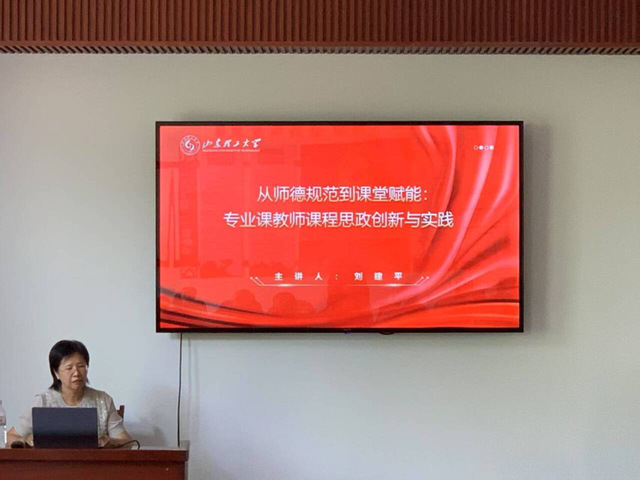 报告会上,刘教授结合二十余年的教学经验,以《高等学校课程思政建设指导纲要》等文件政策要求为切入点,围绕“融什么、怎么融”的课程思政建设主线,详细讲解了以“双线融促”课程建设理念完善“四元素”思政教学设计的举措和方法,介绍了她在课程思政建设中的探索和成果,并通过典型案例分享她对研究生导师行为规范的认识,强调师德筑基,以教师人格魅力点燃学生价值火炬。