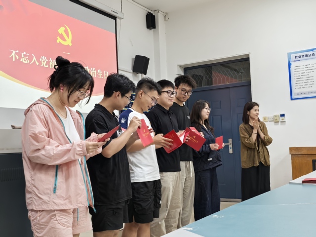 “今天不仅是我的入党纪念日,更是我政治生命的里程碑。” 支部为党员举办集体政治生日会,赵佳佳书记逐一赠予镌刻着入党誓词的 “初心” 主题贺卡,强化党员政治身份认同,希望学生党员能时刻牢记自己的“初心誓言”,用满满仪式感加强学生党员的责任感与信念感。
