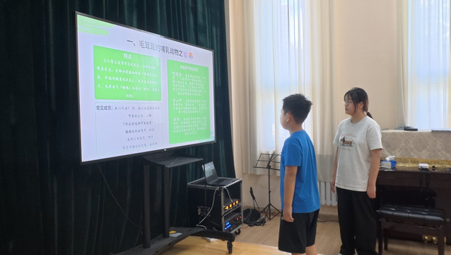 随后,实践团成员带领孩子们走进奇妙的动物世界,开启穿越森林、海洋与草原的探秘之旅。课堂围绕生物多样性展开,引领孩子们徜徉于自然的神奇疆域,激发对生命的好奇与热爱,现场互动积极热烈。