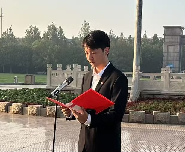 学院团委书记赵佳佳以“弘扬伟大团结精神”为主题,在国旗下为同学们带来了一堂简短而深刻的微团课。她强调,团结奋斗是中华民族的优良传统,是中国共产党和中国人民克服一切艰难险阻、不断从胜利走向新的胜利的重要保证。她结合中国人民抗日战争暨世界反法西斯战争胜利80周年纪念活动,从要强化集体荣誉感,凝聚学院共识;要勇于担当作为,挺膺青年担当;要坚持脚踏实地,落实笃行实干三个方面,号召全院青年学生要深刻理解团结精神的时代内涵,将个人理想融入国家和民族的事业中,在集体中互帮互助、共同进步,为实现中华民族伟大复兴的中国梦贡献智慧与力量。
