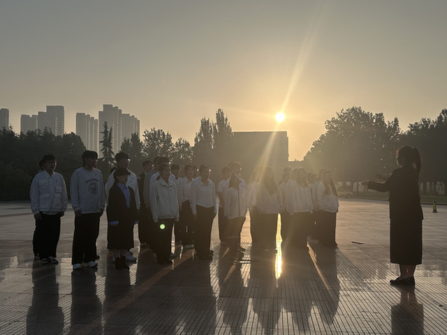清晨6:30,英姿飒爽的国旗护卫队迈着铿锵有力的步伐,护送着鲜艳的五星红旗走向升旗台。在庄严的国歌声中,全体师生肃立行注目礼,注视着五星红旗冉冉升起,迎风飘扬,共同感受这一神圣而庄严的时刻。