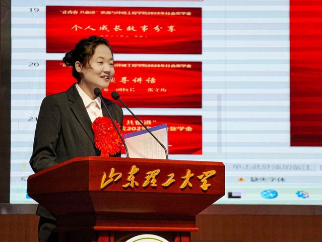 山东华特磁电集团股份有限公司董事、执行总裁王前,党委书记、行政总监王建功,团委副书记郑晓婷;招金矿业股份有限公司人力资源经理张兴;烟台恒邦化工助剂有限公司人力资源部经理王超一;校学生工作部部长朱星辉,资环学院党委书记李新红,执行院长李明,副院长刘晓、李宝玉,学院教师代表、辅导员、获奖学生、2024和2025级学生参加颁奖典礼。典礼由学院党委副书记秦伟伟主持。