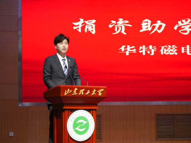 山东华特磁电集团股份有限公司董事、执行总裁王前为获奖集体颁发“华特磁电”优良学风班奖学金